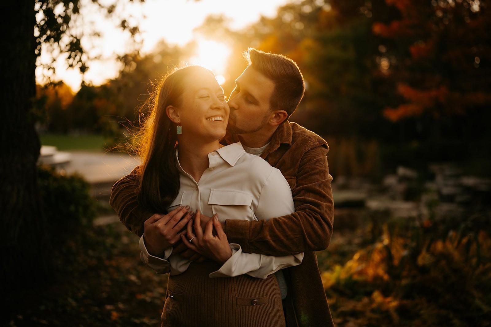 After finishing our coffees, we made our way over to Victoria Park where we were met with the most stunning fall sunset. The old city hall clock tower, the stunning fall colours and the remaining summer blooms made for the most picturesque backdrop for Natalia & Ben's engagement photos.